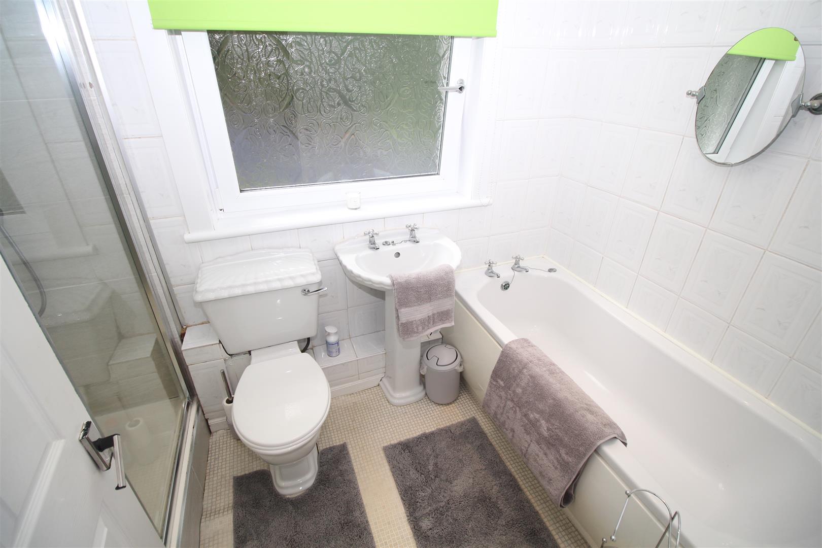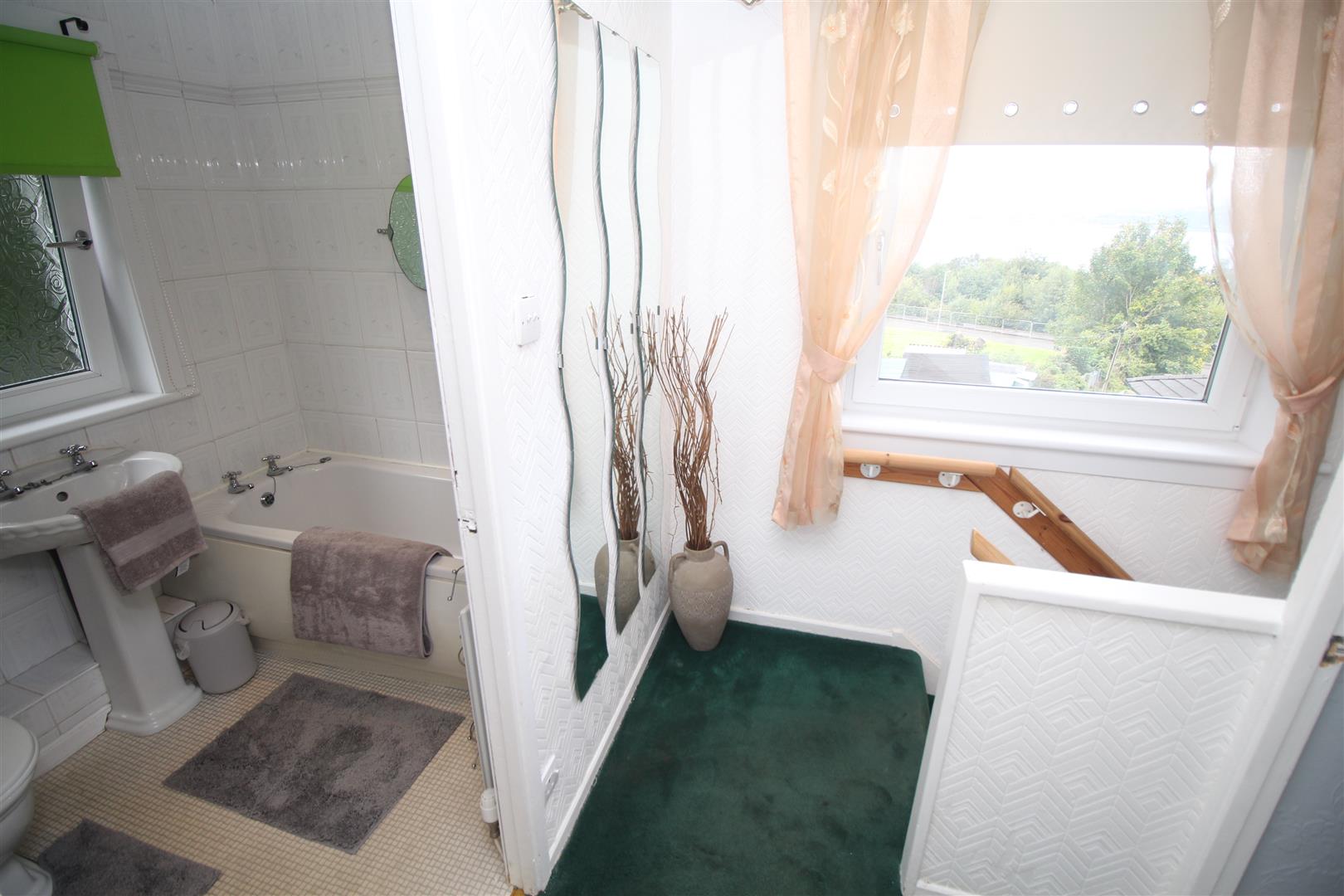 Stairs lead to the Upper Landing with side window which offers views towards the River Clyde continuing to Helensburgh beyond and hatch to loft. There are two double sized Bedrooms both with wardrobe storage. There is a generous sized rear facing Bathroom with four piece suite comprising: pedestal wash hand basin, wc, bath and double sized shower cubicle with chrome style shower. Additional features include: wall tiling.