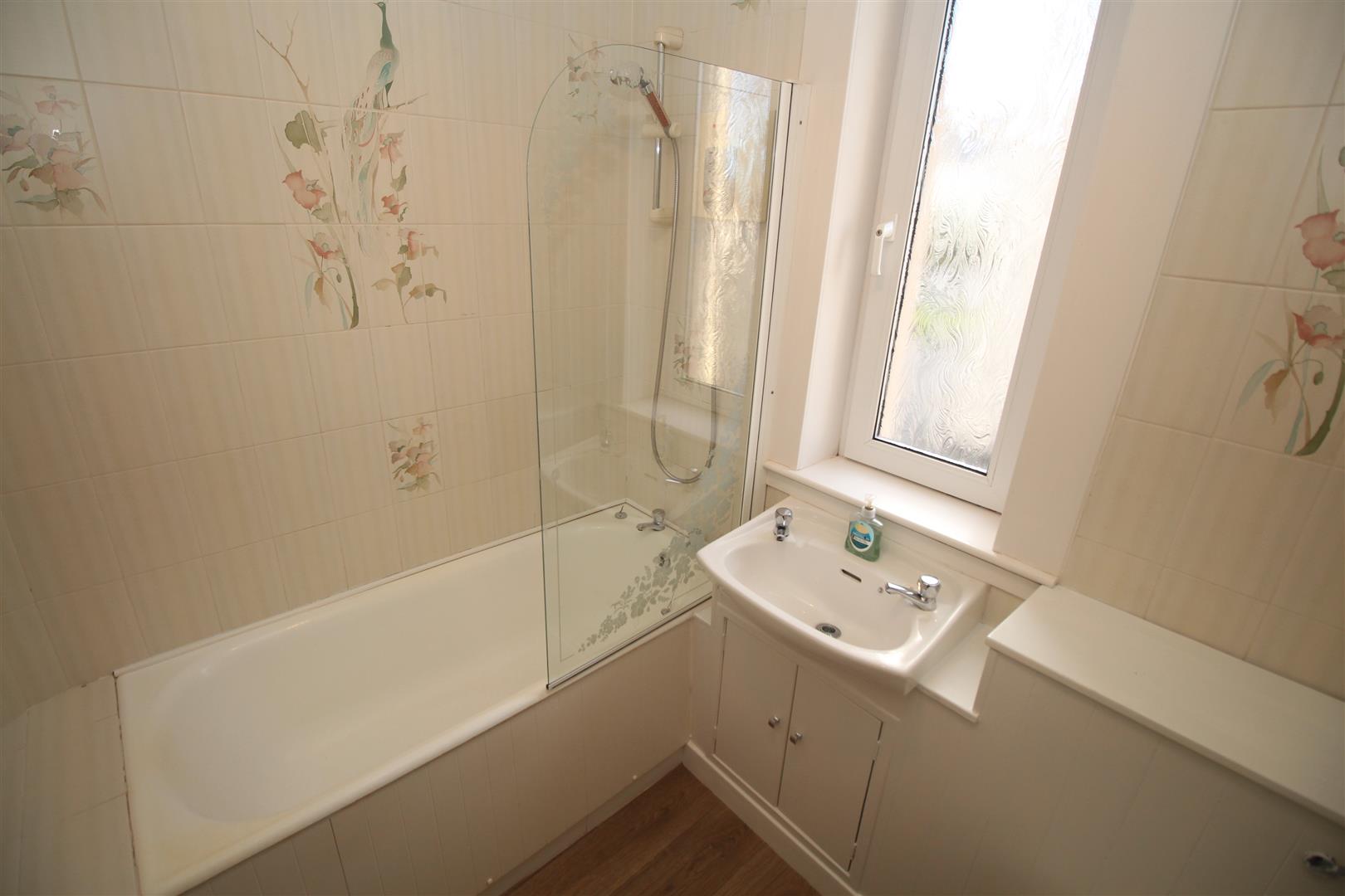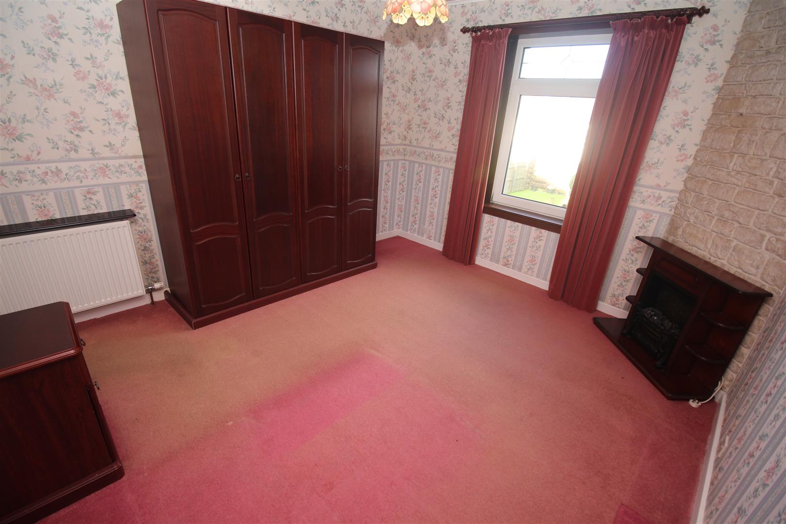 There are two rear facing double sized Bedrooms which overlook the garden. The 1st bedroom features a mahogany style wardrobe unit, two bedside cabinets and fireplace. The Bathroom with side window has a three piece suite comprising: vanity wash hand basin, wc and bath with “Heatstore” shower plus partial wall tiling.