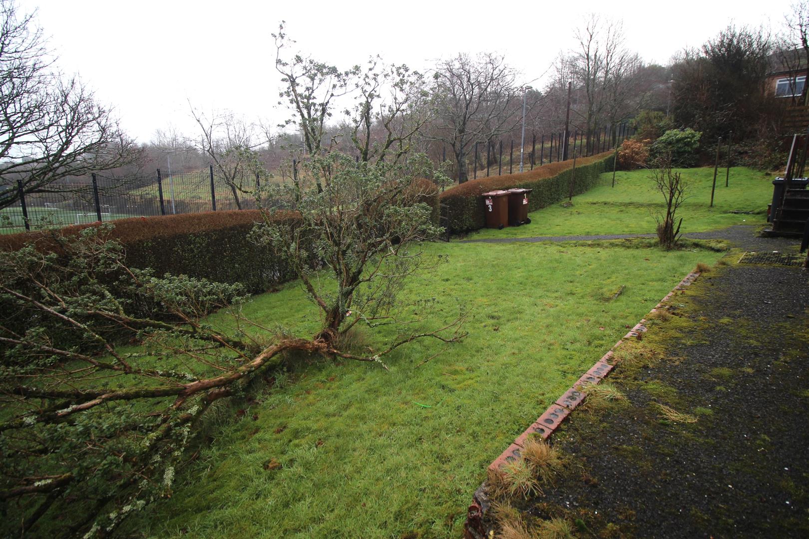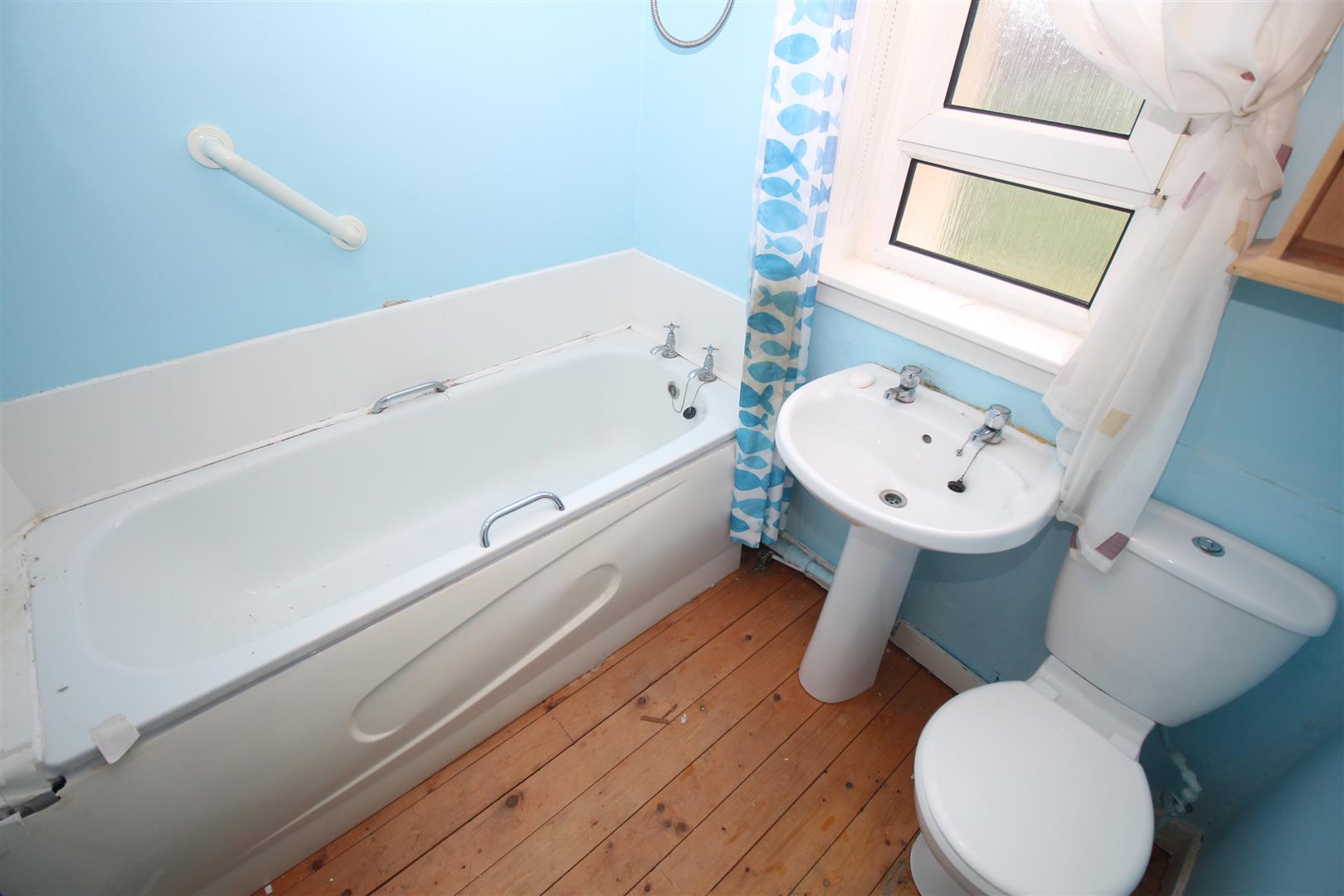 There are two rear facing double sized Bedrooms. The 1st bedroom features fitted wardrobes and an inbuilt cupboard. The Bathroom with side window has a three piece suite comprising: pedestal wash hand basin, wc and bath with “Triton” shower.