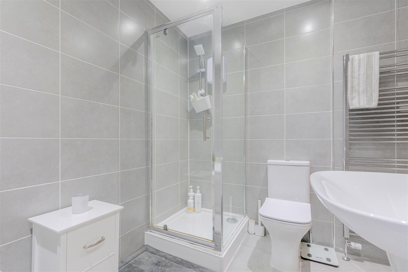 There are two double Bedrooms. The 1st bedroom features a walk in wardrobe and there is cupboard storage within the 2nd bedroom. The luxury upgraded Shower Room benefits from a four piece suite comprising: pedestal wash hand basin set in white high gloss unit, wc, bath and shower cubicle. Further features include: wall and floor tiling, chrome style heated towel rail, downlighters and decorative panelled ceiling.