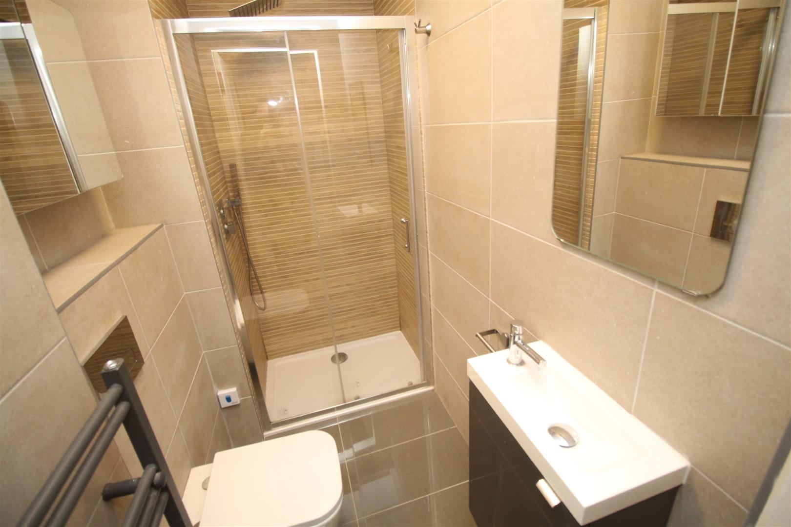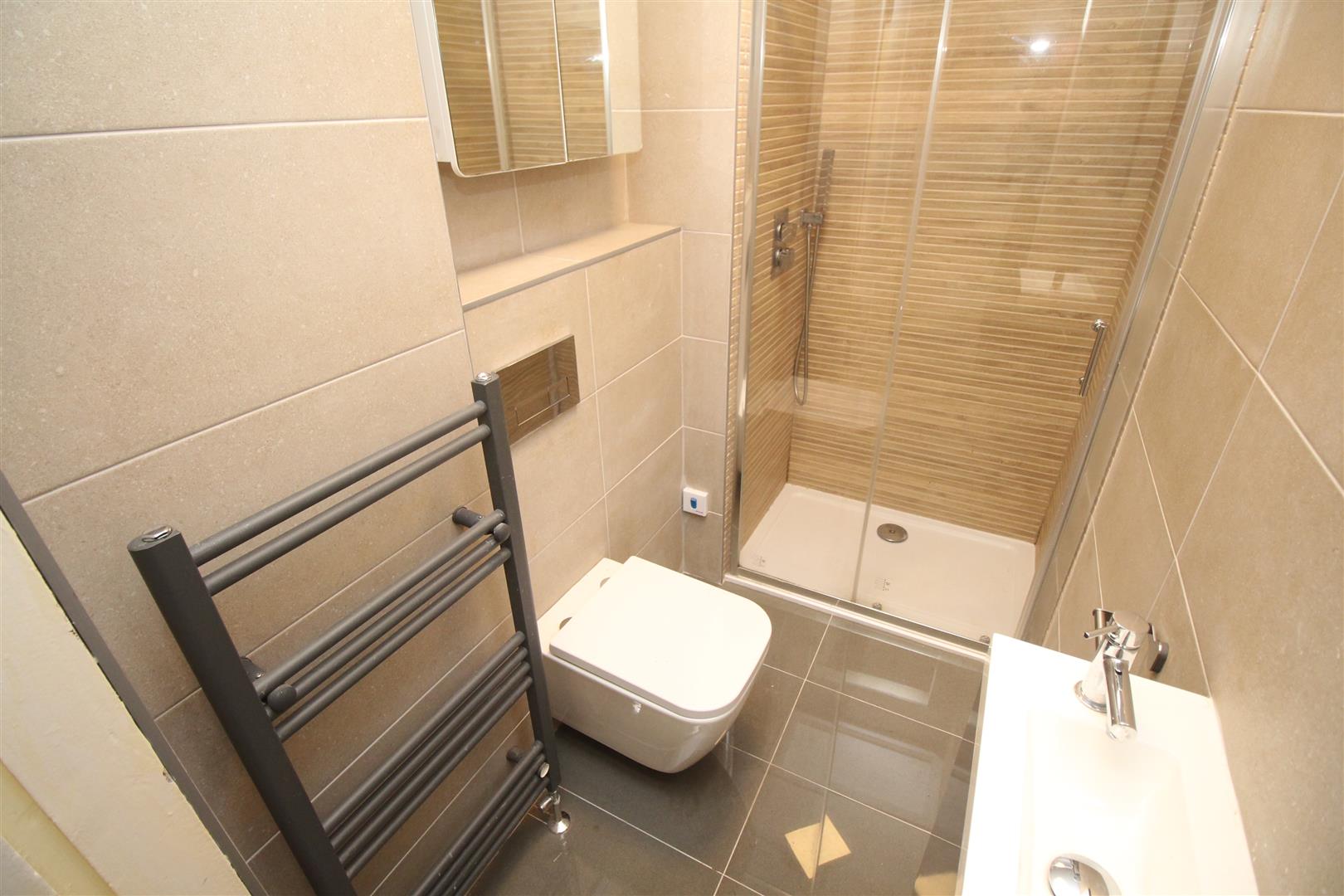 The double sized Bedroom is a bright front facing apartment. The quality refitted Shower Room features a three piece suite comprising: vanity wash hand basin set within dark grey high gloss unit, wc and double sized shower cubicle with chrome style shower. Further benefits include: wall/floor tiling, anthracite heated towel rail. There is a hatch to loft.