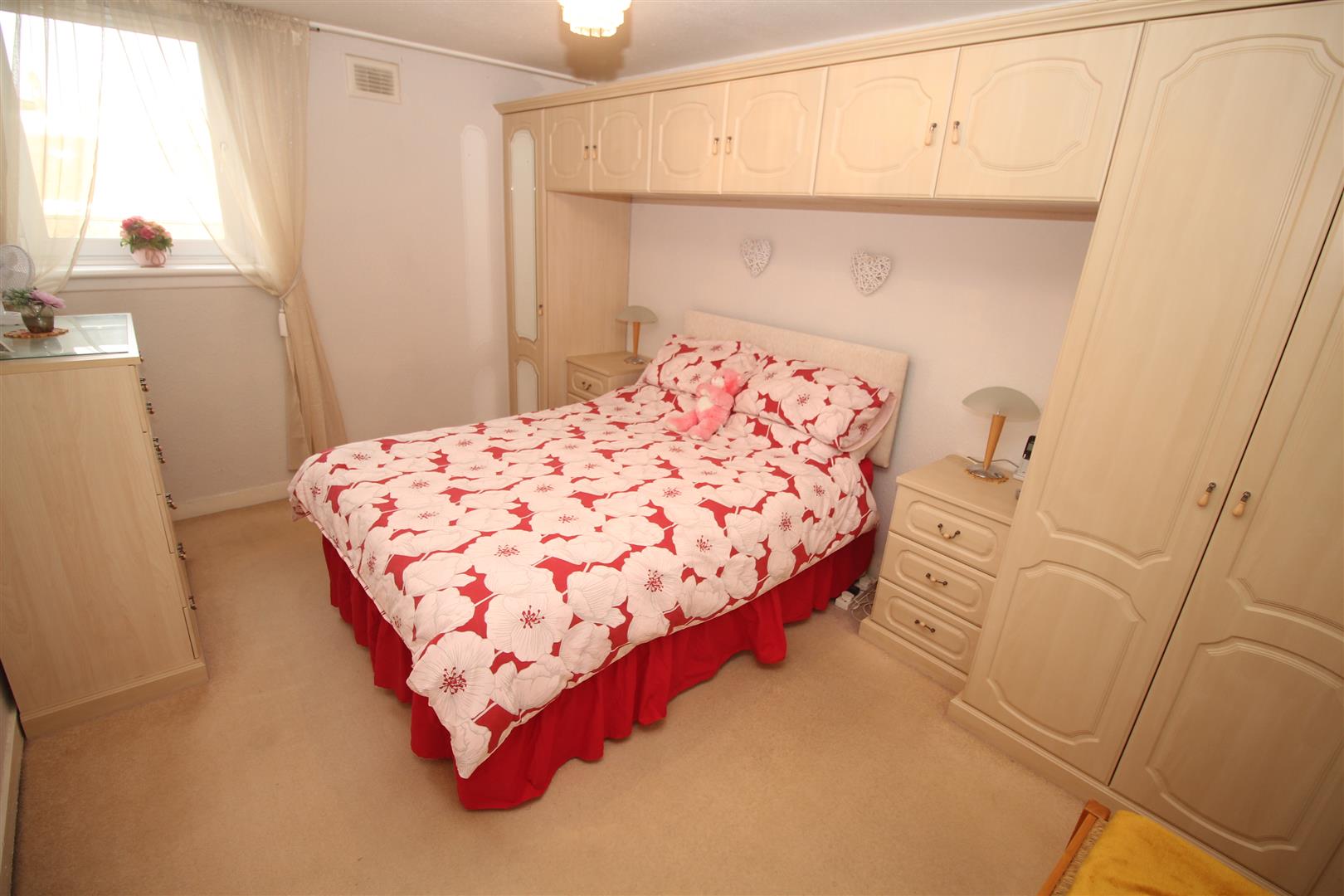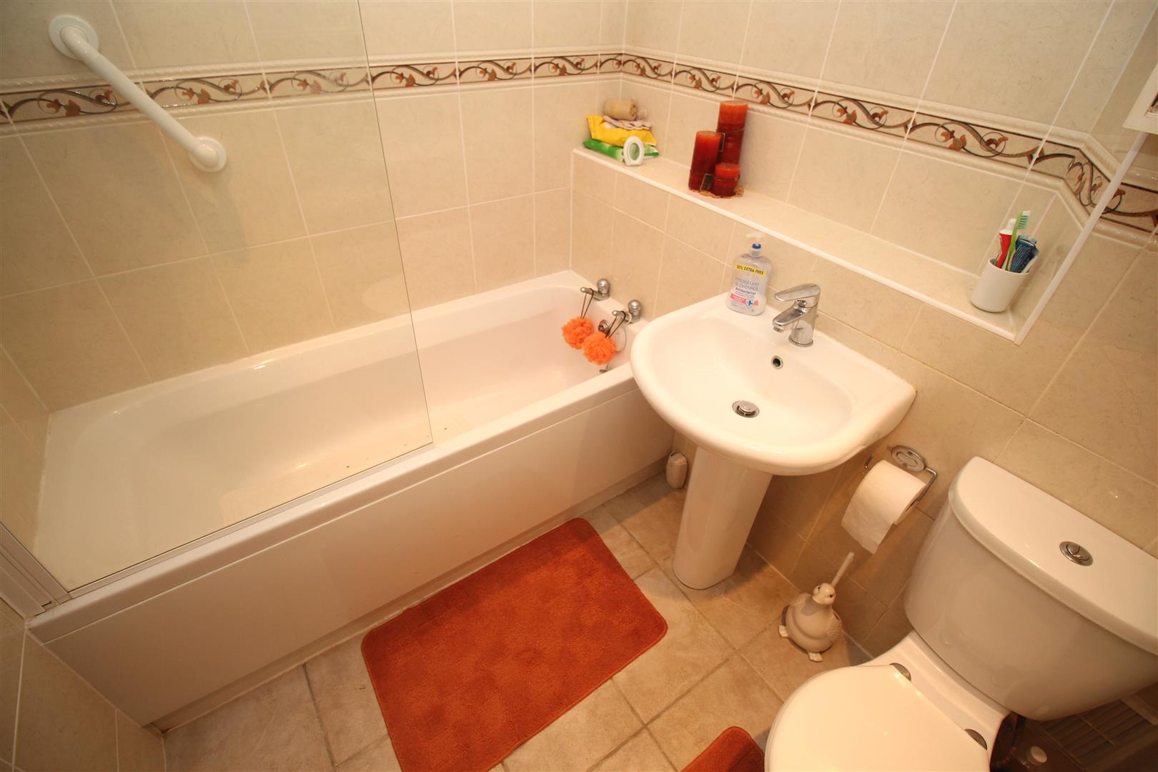 There are two front facing double sized Bedrooms. The 1st bedroom benefits from maple style fitted wardrobes and beside cabinets. The Bathroom offers a three piece suite comprising: pedestal wash hand basin, wc and bath with “Mira” shower. There is wall and floor tiling, plus a decorative panelled ceiling with downlighters.