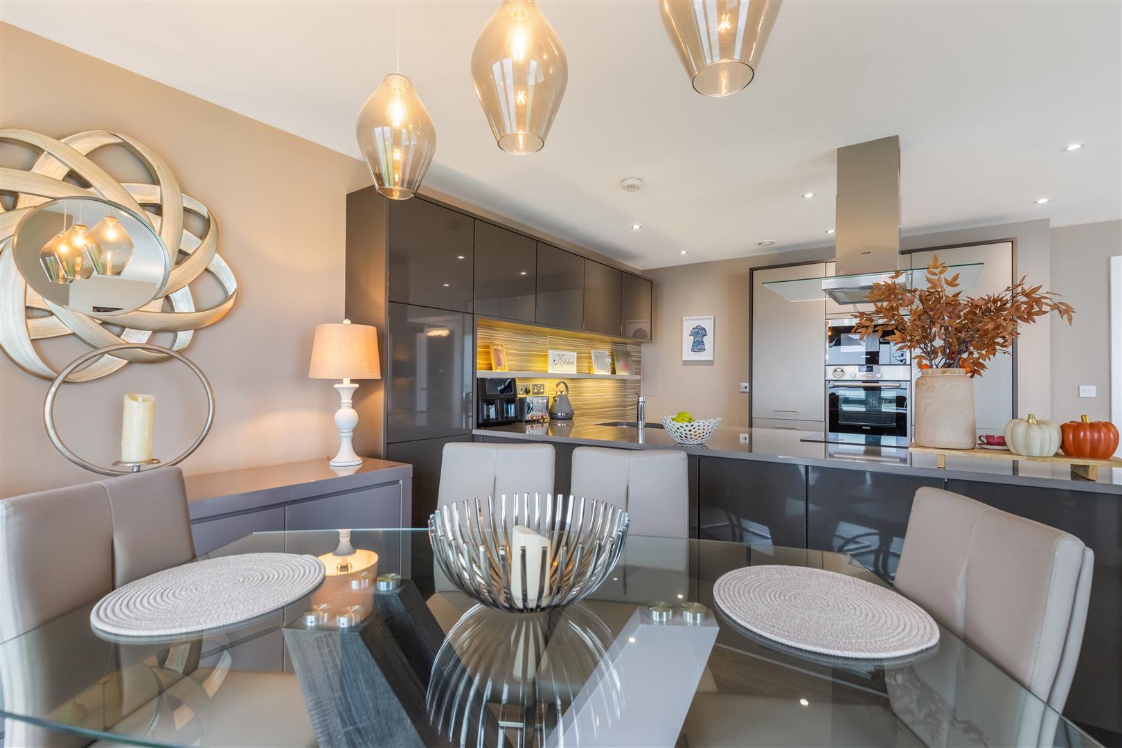 Excellent apartments comprise: welcoming “L” shaped Reception Hallway with two storage cupboards and plumbed fitted Utility Store with washing machine and tumble dryer. There is a stunning front facing Lounge with focal point media wall and feature floor length window/sliding patio door formation giving access to the balcony. This room is on open plan with the kitchen and dining area offering a bright modern living space perfect for relaxing with family/friends and also for maximising the superb views.