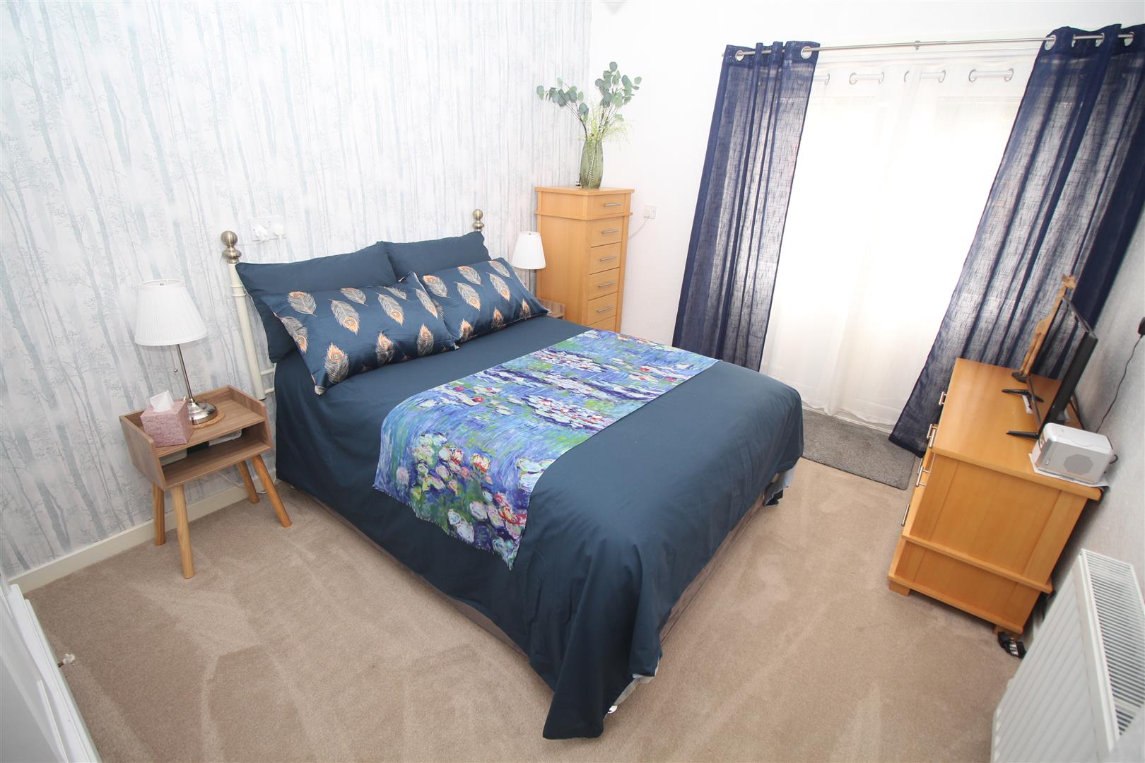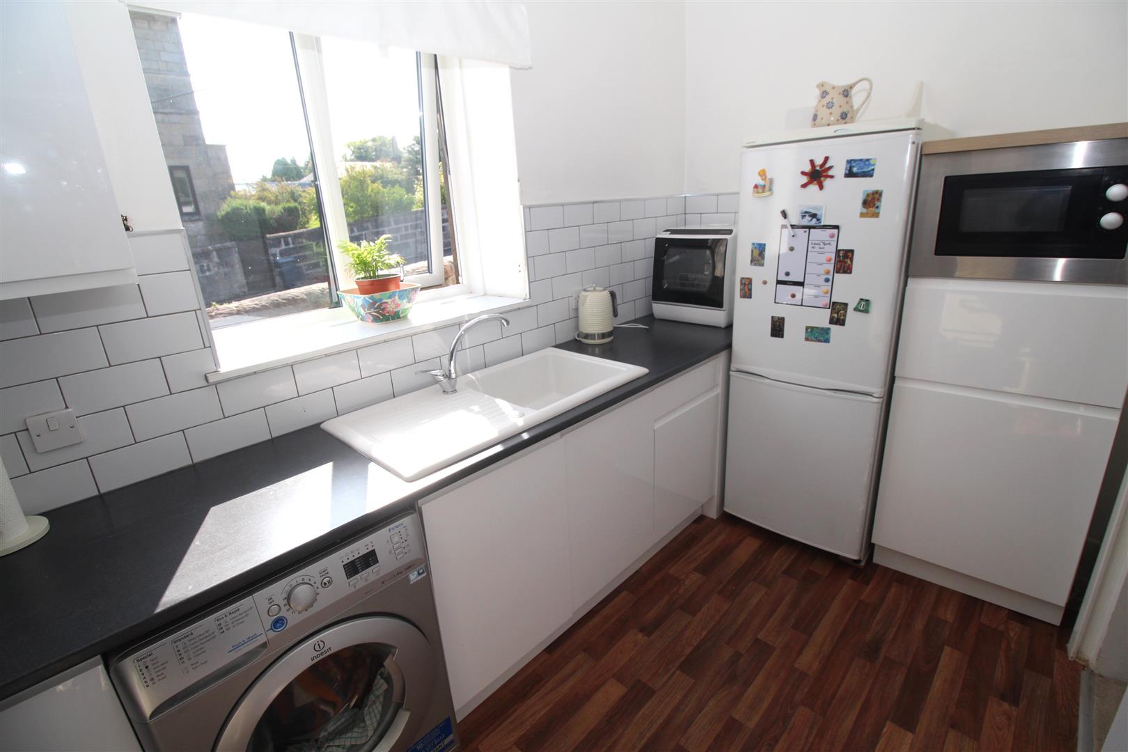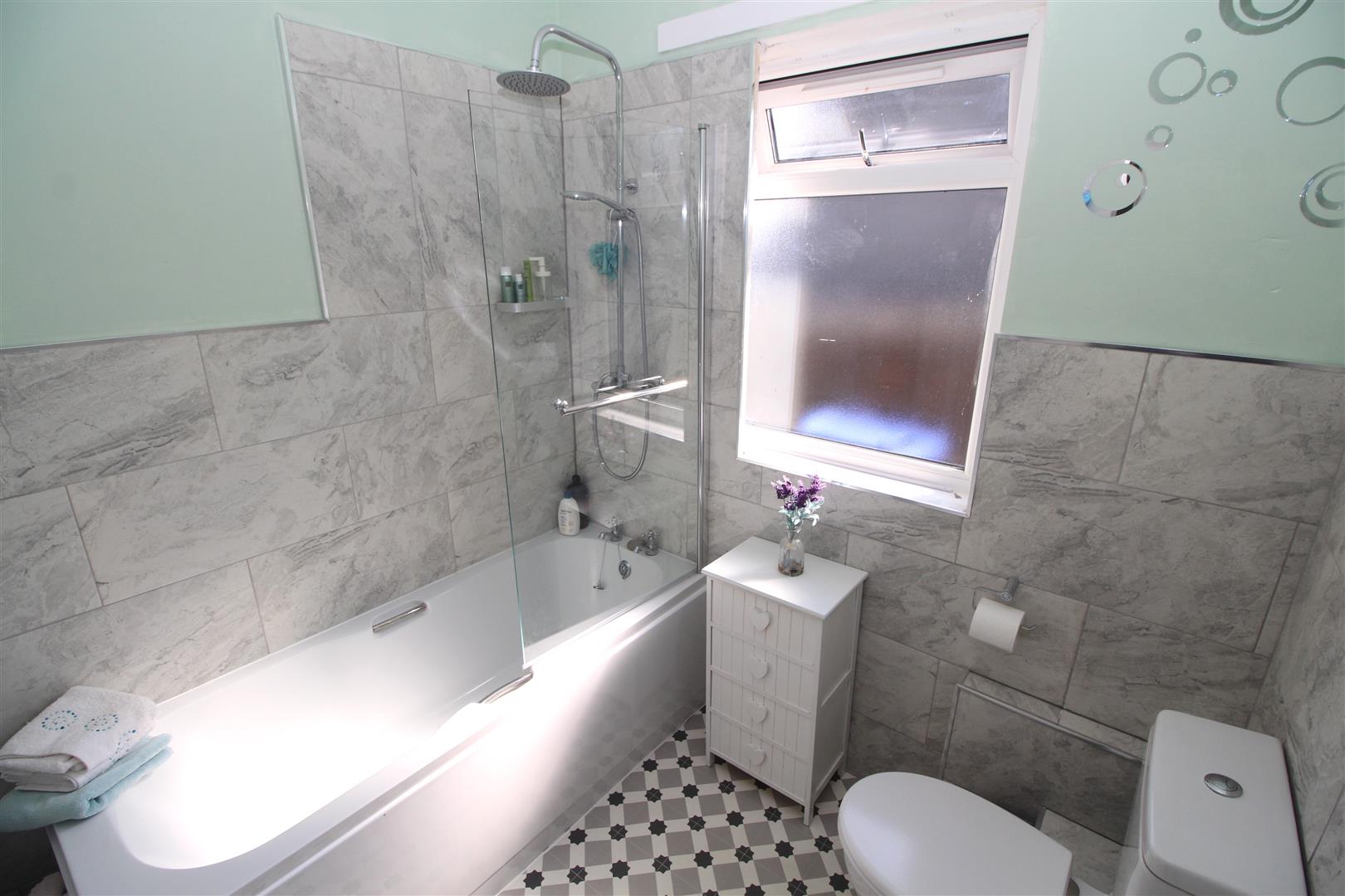 The Kitchen offers a side window and recently refitted range of white high gloss units, marble style work surfaces and splashback tiling. There are two double sized Bedrooms. The 1st bedroom features French doors which provide direct access to the garden. The quality recently refitted Bathroom benefits from a side window and offers a three piece suite comprising: pedestal wash hand basin, wc and bath with chrome style shower. Specification also includes: partial wall tiling, shower screen and a chrome style heated towel rail.