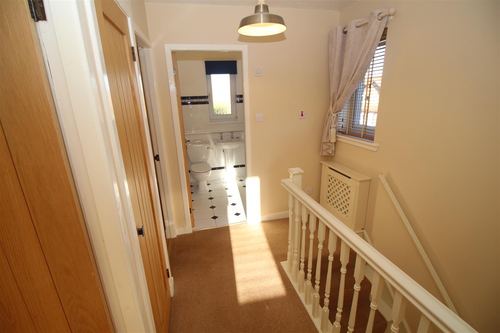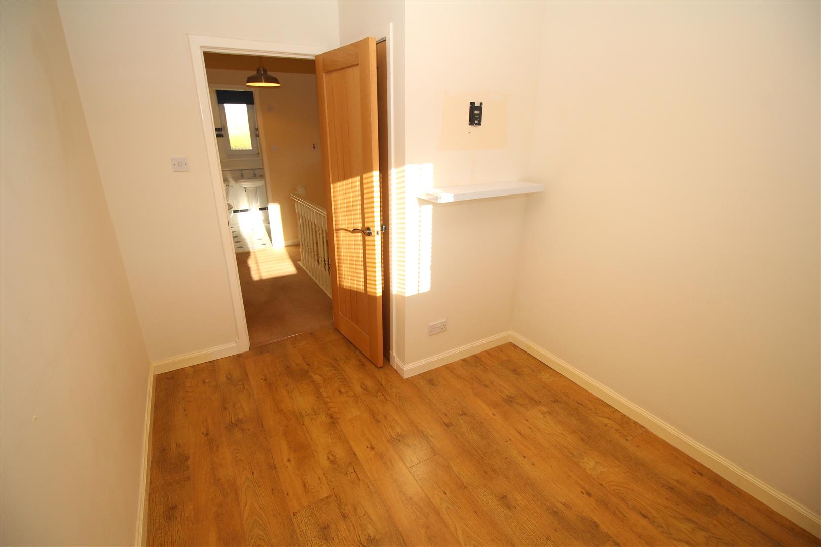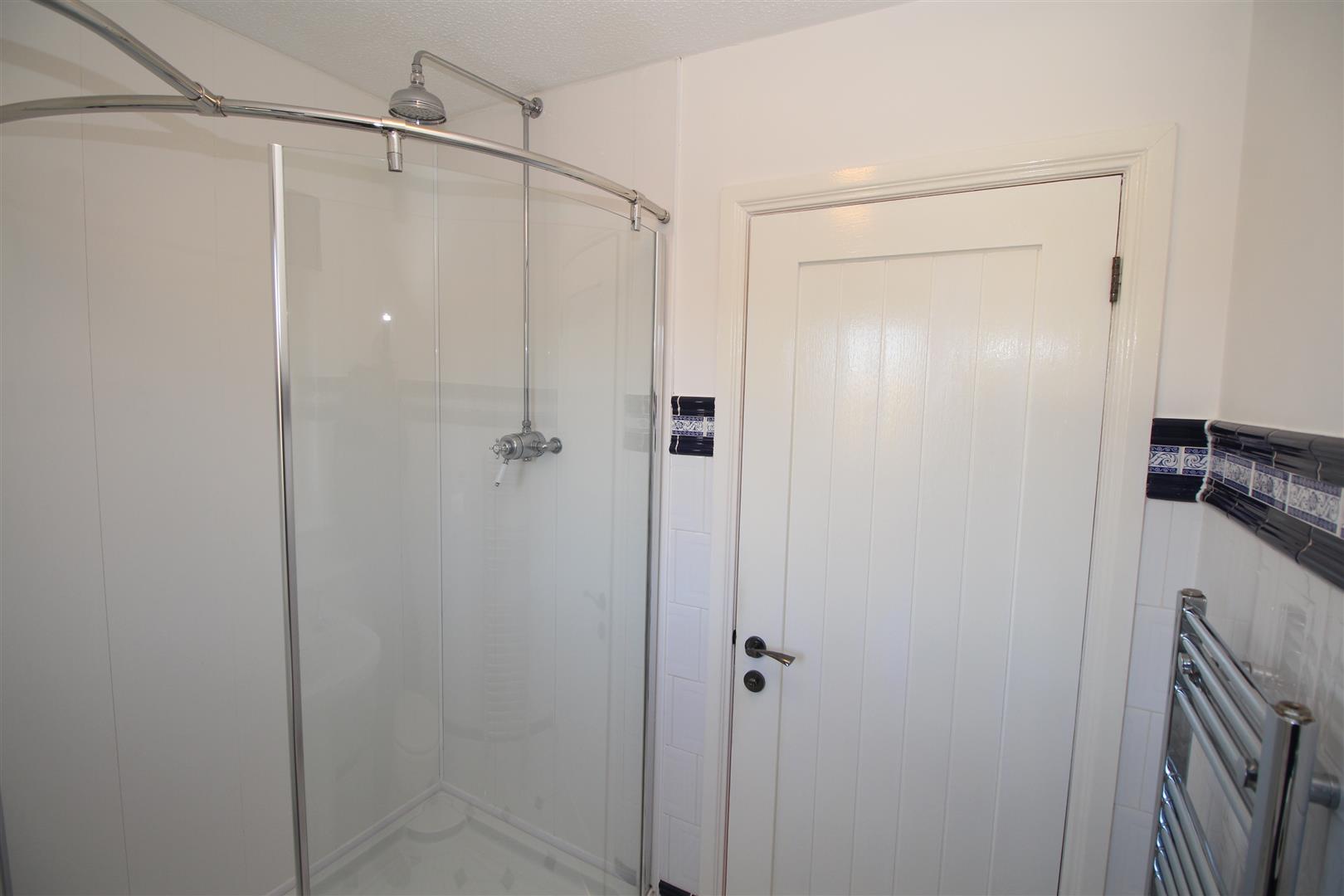 Stairs lead to the Upper Landing with hatch to the loft, inbuilt cupboard and side window. There are two double sized Bedrooms and 3rd single Bedroom. All bedrooms benefit from wardrobe or cupboard storage. The quality Shower Room features a rear window and three piece suite comprising: pedestal wash hand basin, wc and double sized shower cubicle with “Bristan” shower. Additional benefits include: partial wall tiling, tiled floor and chrome style heated towel rail.