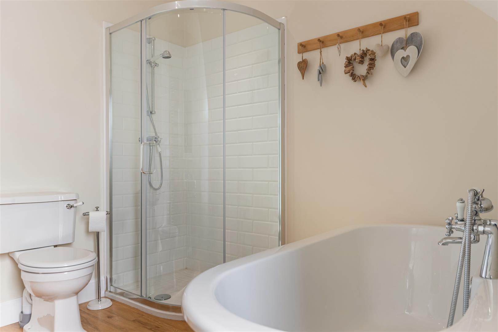 Stairs lead to Upper Landing. There are two bright, spacious double Bedrooms including master with quality Ensuite Shower Room which benefits from a double sized cubicle, vanity wash hand basin and wc. The Bathroom features a luxury four piece suite comprising: pedestal wash hand basin, wc, free standing bath and separate shower cubicle.