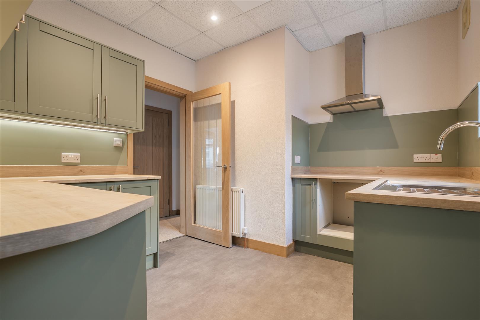 The quality refitted Kitchen features olive toned units, maple style work surfaces and stainless steel chimney extractor hood There is access from the kitchen to the fitted Utility Porch with UPVC double glazed door leading to the garden.
