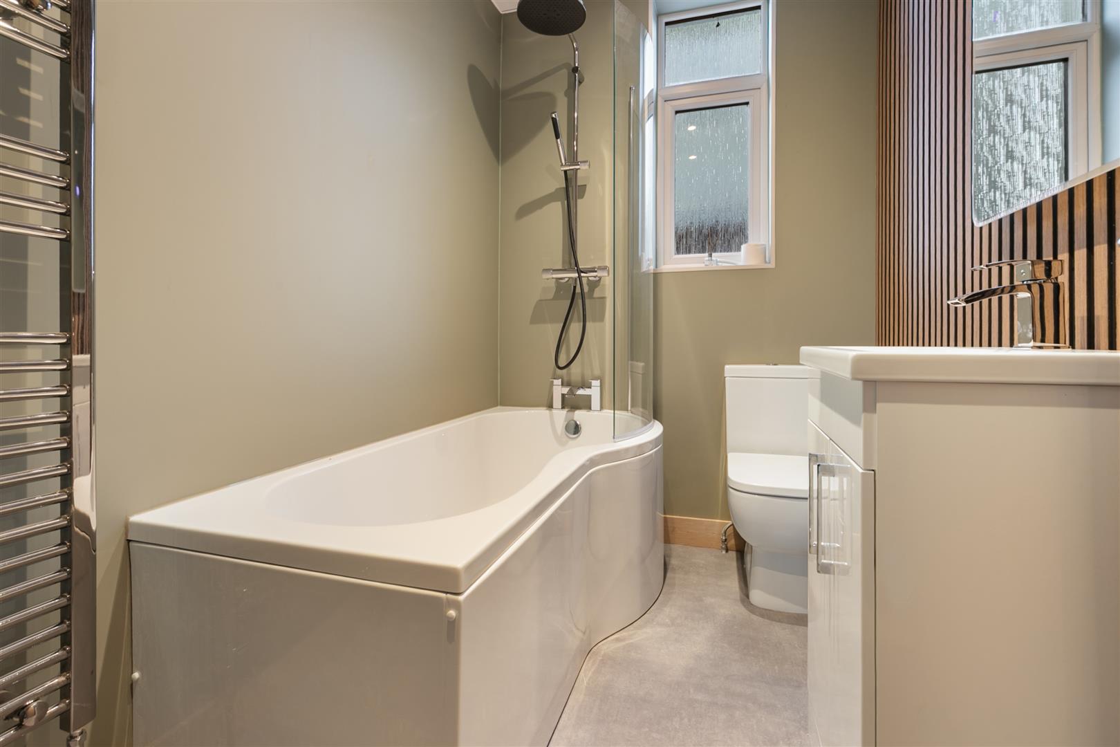 There are two downstairs double sized Bedrooms. The luxury refitted Bathroom comprises: vanity wash hand basin, wc and shower bath with chrome style shower plus heated towel rail.