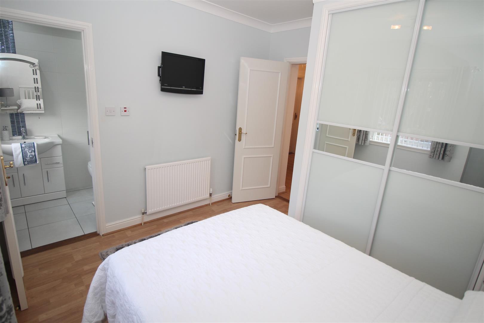 The Master Bedroom benefits from fitted mirrored wardrobes. There is a refitted Ensuite Shower Room with suite comprising: vanity wash hand basin set within white high gloss unit, wc and shower cubicle with chrome style shower. Additional features include: wall/floor tiling and decorative panelled ceiling. Bedroom 2 is a double sized room offering fitted wardrobes. The Bathroom has a three piece suite providing: pedestal wash hand basin, wc and bath. There is wall/floor tiling.