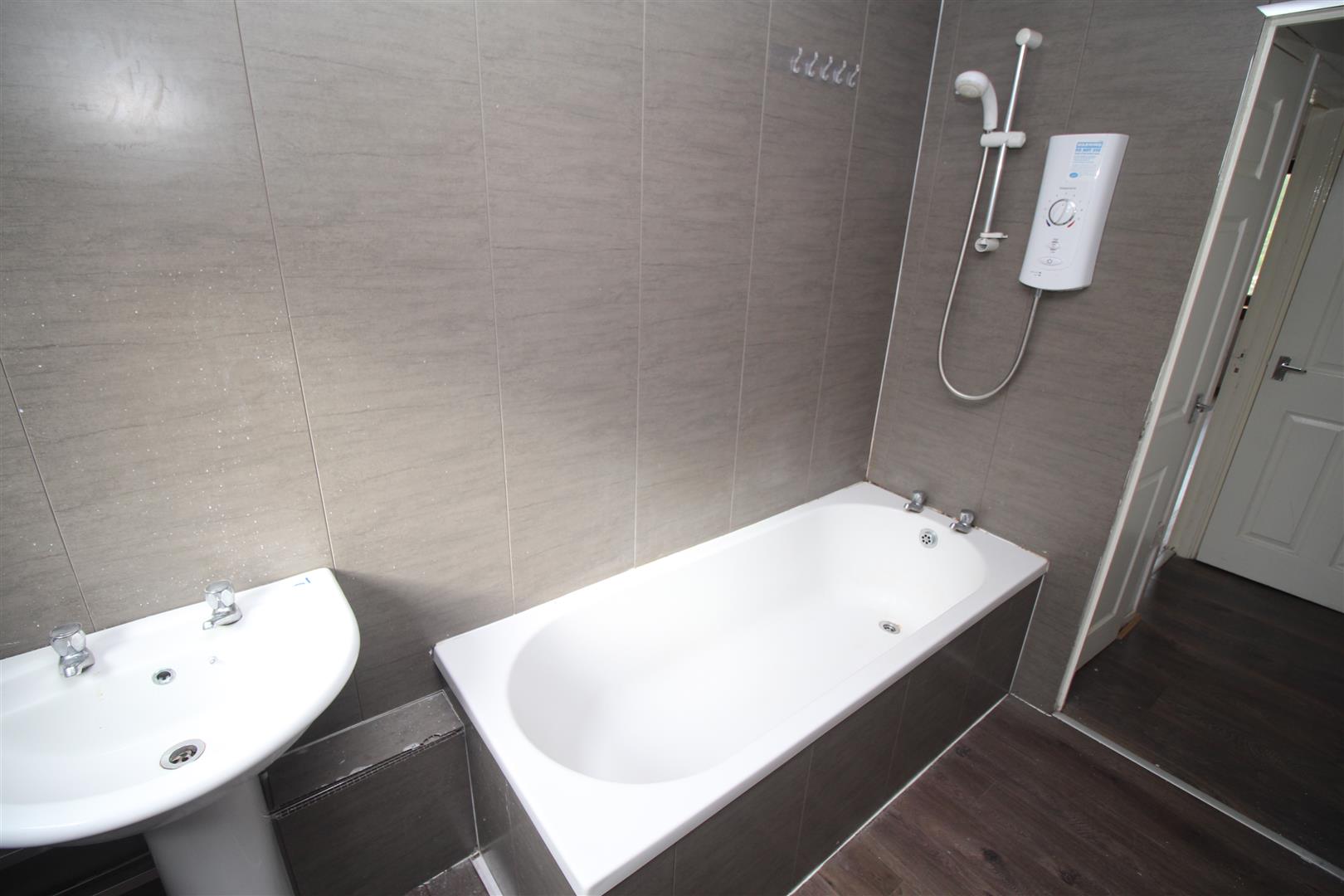 There are two double sized Bedrooms. The Bathroom with rear window and wet wall panelling has a three piece suite including: pedestal wash hand basin, wc and bath.