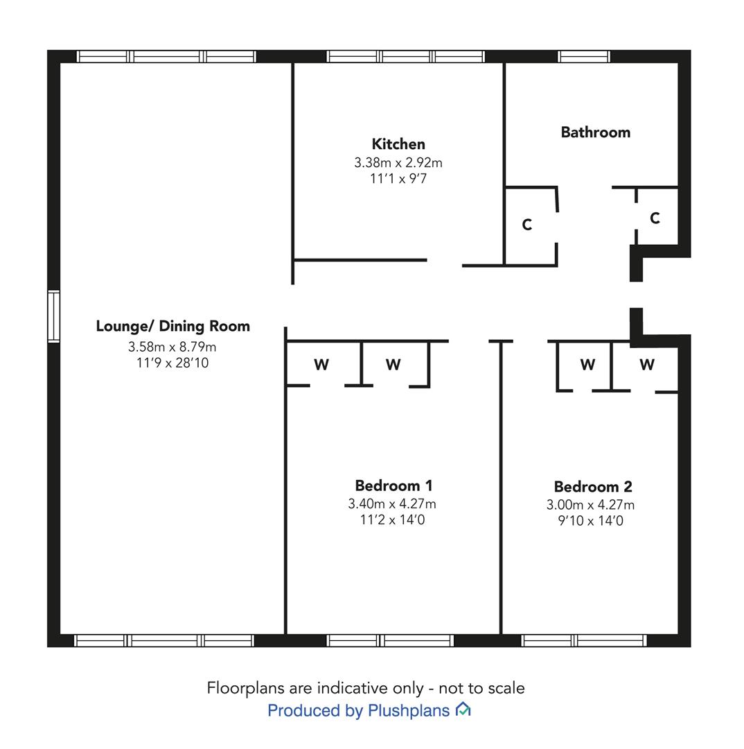 Superb apartments comprise: welcoming Entrance Hallway is reached by single glazed timber door with side panel plus two inbuilt cupboards provide generous storage. The spacious, bright Lounge / Dining Room has windows to the front, side and rear. There is ample space for a dining table and chairs. The rear facing Kitchen features quality white fitted units and marble style work surfaces. Appliances include: stainless steel chimney extractor hood, electric ceramic hob, oven, washing machine, dryer and fridge/freezer.