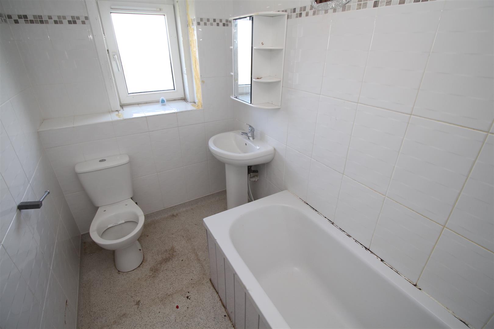 Stairs lead to the Upper Landing with front window and access the loft. There are two double sized Bedrooms. Bedroom 1 is a dual aspect room with windows to the front and rear. The Bathroom with rear window offers a suite comprising: pedestal wash hand basin, wc and bath (untested).